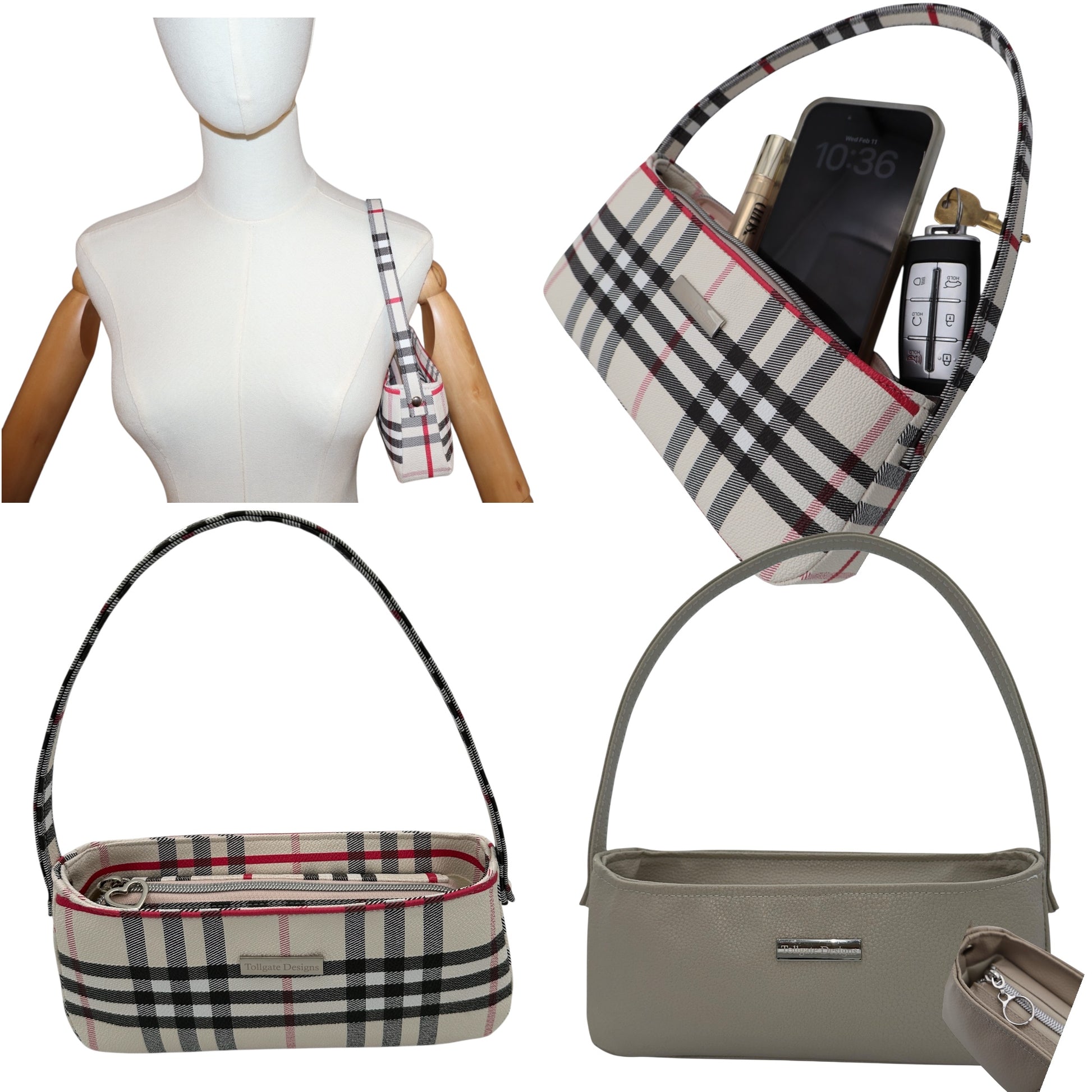Available in Pale Pink Plaid and Oyster